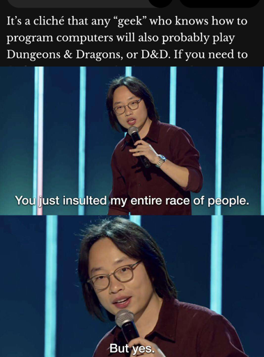 eerongal@ttrpg.network to RPGMemes @ttrpg.network · 24 days agojust because its true doesnt mean you have to say itttrpg.networkimagemessage-square49fedilinkarrow-up1372