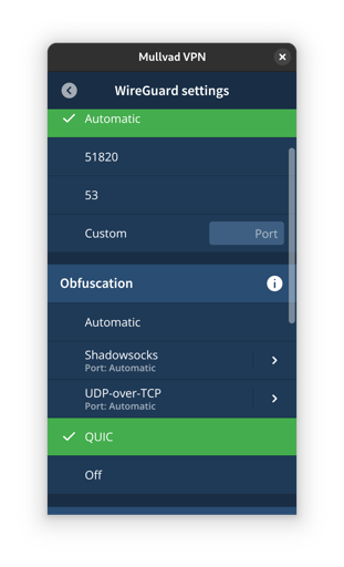 “The Android & iOS apps will include QUIC obfuscation in future releases.”