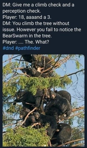 Using swarm rules from PF1E for bears is actually a nightmare scenario that I need to use someday. Beears?