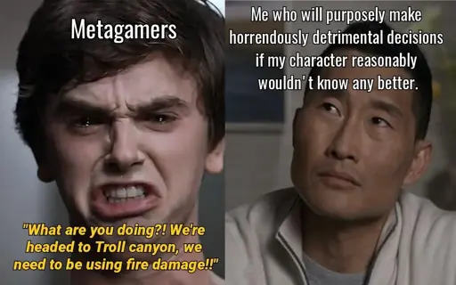 I’ll take a meta gamer over someone with “my guy” syndrome any day. At least they’ll progress the plot.