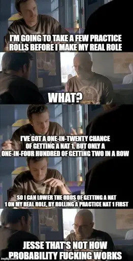 Stamets@lemmy.dbzer0.com to RPGMemes @ttrpg.network · 3 days agoCome on guys...lemmy.dbzer0.comimagemessage-square63fedilinkarrow-up1621