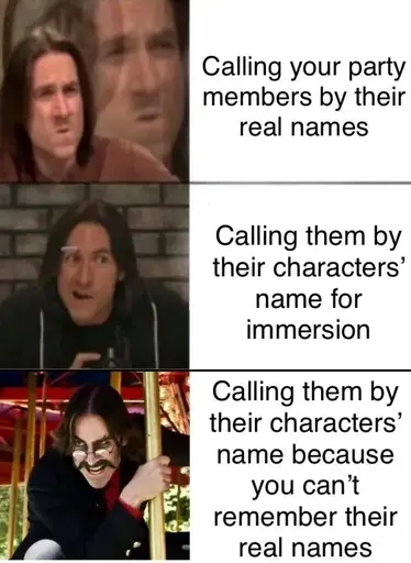 Stamets@lemmy.dbzer0.com to RPGMemes @ttrpg.network · 3 months agoI just keep forgettinglemmy.dbzer0.comimagemessage-square15fedilinkarrow-up1594