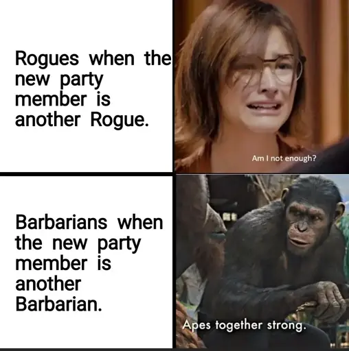 arrow-up1628imageCompetition? No. Comrade.lemmy.dbzer0.comStamets@lemmy.dbzer0.com to RPGMemes @ttrpg.network · 16 days agomessage-square33fedilink