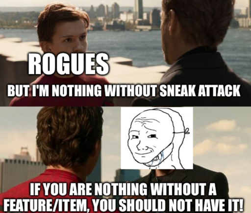 jounniy@ttrpg.network to RPGMemes @ttrpg.network · 2 months agoBetter don’t give martials any weapons and casters no spellcasting then…ttrpg.networkimagemessage-square39fedilinkarrow-up1109