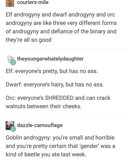 i think the dwarves are so hairy you can’t tell. like longhair kittens and tribbles
