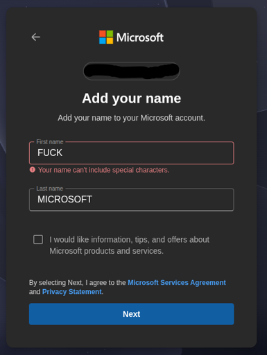 What about people who have swear words their their name like Dick, are they just supposed to change their legal name to get a microsoft account?